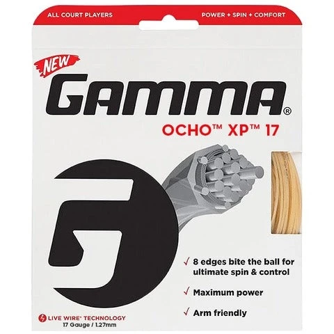 The first multifilament string construction that features an octagonal shape for maximum bite on the ball and unparallelled spin potential. Arm-friendly but with ultimate spin potential, Gamma Ocho XP is a tennis player’s dream. Perfect for the players that want to experience the benefits of a multifilament string (power and comfort) but maximize RPM on the ball. Included in this string is Gamma’s Live Wire Technology to provide the greatest combination of power and control in a premium tennis string. The 8 razor sharp edges help you dictate will on the ball to give lots of bend on your shots so they dip back down to the court and paint the lines.