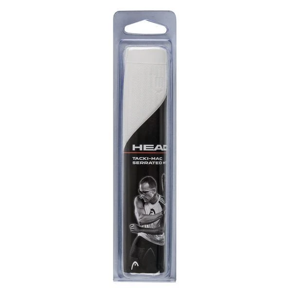 The Head Tacli-Mac Serrated MT Grip is a one-piece slide-on featuring a raised serrated traction pattern. The Kraton rubber provides excellent feel. In combination with a glove, this easy-to-install grip is the ultimate non-slip surface no matter how heated the game might get.