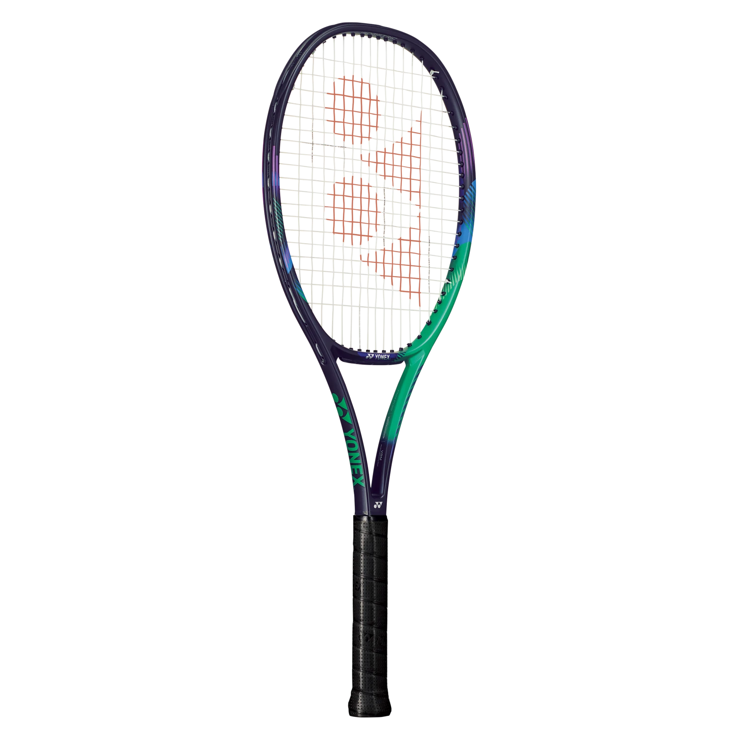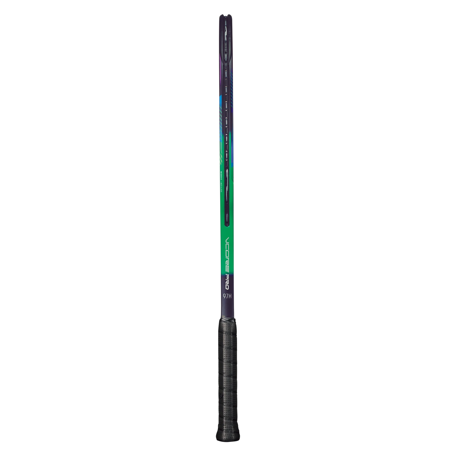 The Yonex VCORE Pro 97H (330g) is a heavyweight champion plenty of plow through, flex and feel for experienced players. Boasting a sharp new green and purple cosmetic, the Yonex VCORE Pro 97H (330g) has been updated inside and out with more flex and a new player friendly frame geometry. Yonex introduces FlexCon System, a new combination material that improves flex. FlexCon features a tapered box-frame design and long shaft with Flex Force Graphite and Flex Fuse Graphite to increase flex. Flex Force delivers flex and snapback while Flex Fuse provides flex and a softer feel. The higher flex creates longer ball contact and more feedback to give you better trajectory and placement control. Signature technologies continue to make he Yonex VCORE 97H (330g) a reliable frame. Isometric technology enlarges the string bed’s sweet spot while Lock Booster Grommets provide more power potential. The new frame geometry and technology add to the impressive playability of the Yonex VCORE Pro 97H (330g). The combination of new technology and classic VCORE 97 specs make this a perfect choice for experienced payers that want to control point after point. On groundstrokes the Yonex VCORE Pro 97H (330g) comes through the ball from light and heavy hitters with tremendous stability and feel. Generously head light for added maneuverability, players that come in to the net can rely on the racquet to absorb power and redirect it with control. A thicker frame design and longer shaft for more flex, the Yonex VCORE Pro 97H (330g) adds a new chapter to one of the heavyweight champion frames in tennis.